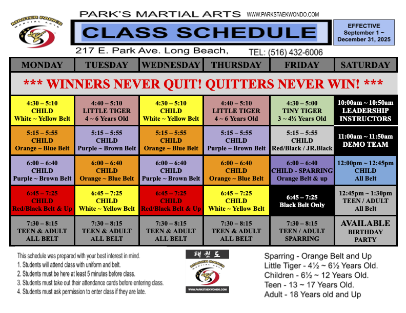 Our Little Tigers classes help preschoolers and kindergarteners to strengthen basic life skills while developing their physical abilities. Children will strengthen their self-control and discipline while having fun and getting exercising through fun activities! Children will be able to develop their skills in this class until they reach the age where they are physically and mentally old enough to move up to Children's class.